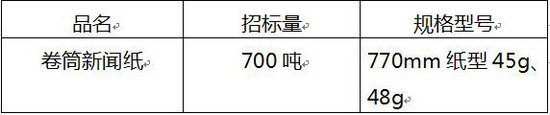 綿陽市欣文印務(wù)有限公司計(jì)劃公開招標(biāo)采購770mm紙型45、48克卷筒新聞紙約700噸(此數(shù)量為年計(jì)劃用量,實(shí)際采購數(shù)量和規(guī)格按我方下達(dá)的送貨計(jì)劃執(zhí)行),歡迎新聞紙生產(chǎn)企業(yè)和經(jīng)銷企業(yè)參與投標(biāo)。相關(guān)事項(xiàng)公告如下: