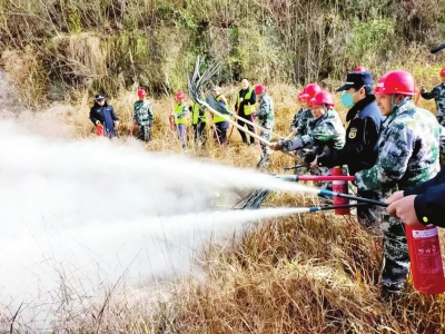 演練現(xiàn)場模擬隨著氣溫回暖,進(jìn)入景區(qū)、林區(qū)游玩人員明顯增多,護(hù)林員巡護(hù)時發(fā)現(xiàn)起火,隨即向區(qū)應(yīng)急指揮部報告,指揮部同步啟動森林火災(zāi)應(yīng)急響應(yīng),派出多組應(yīng)急隊伍開展應(yīng)急搶險。一組應(yīng)急隊員快速管控道路、疏散周邊群眾,另一組攜帶撲火設(shè)備趕赴火災(zāi)現(xiàn)場實施撲救,很快將火撲滅。隨后,由該村安排人員駐守火場24小時,防止死灰復(fù)燃。