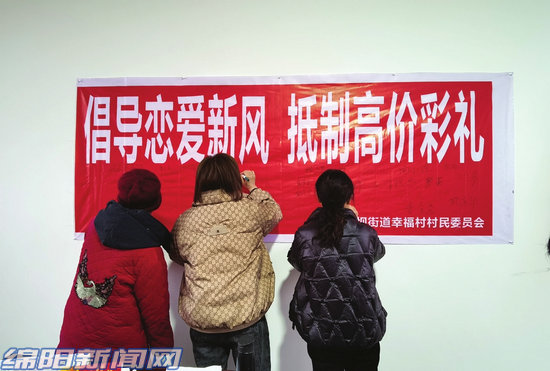 隨后,活動宣讀了“倡導戀愛新風抵制高價彩禮”倡議書,黨員代表們充分發(fā)揮示范引領作用,帶頭簽訂了“治理高價彩禮推進移風易俗”承諾書,村民們積極響應,主動參與,在簽名橫幅上落下自己的名字,表示愿意從自身做起,推行“零”彩禮、婚事簡辦等文明新風,在今后的生活中將加大健康婚嫁文化宣傳,抵制“天價禮”、盲目攀比等不良習俗,真正將婚嫁新風尚落到實處。(綿報融媒記者 趙燁 文/圖)