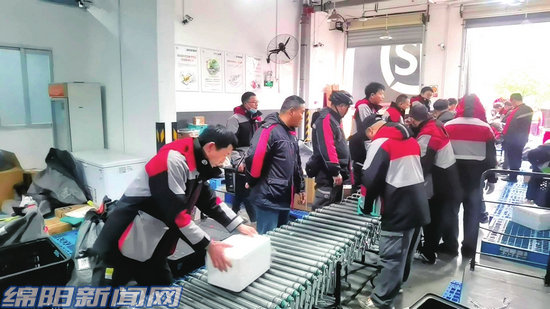 綿陽(yáng)新聞網(wǎng)訊 2月25日11時(shí)30分,在涪城區(qū)劍南路西段388號(hào)順豐速運(yùn)營(yíng)業(yè)部門口,幾十輛快遞車有序停放,快遞小哥正在等待派發(fā)快遞。