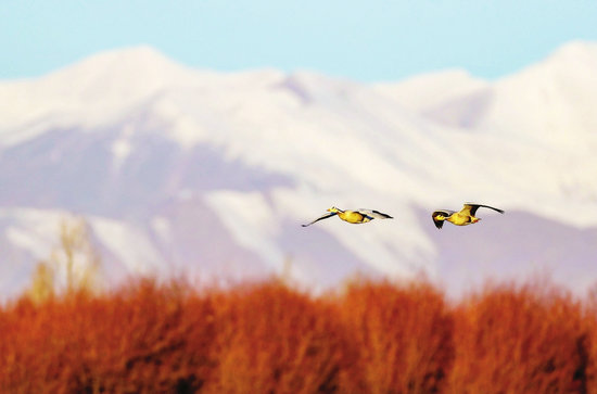 雪落群山壯美 鳥舞河谷翩躚