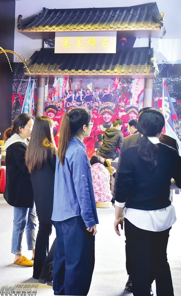 而在他的身后,是“搬”到展銷(xiāo)會(huì)現(xiàn)場(chǎng)的石椅羌寨大門(mén),配上進(jìn)寨儀式的照片,讓佛山市民有身臨其境的感覺(jué)。