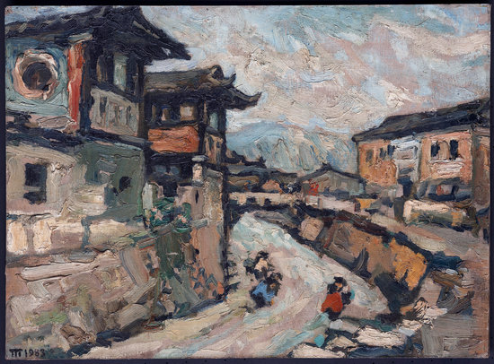 新中國成立后,胡一川多次帶著油畫箱和畫布返鄉(xiāng),竭盡全力去描繪縈繞心田的家鄉(xiāng)美景。《我的故鄉(xiāng)》《蘆下壩水電站》《龍巖富礦》《閩西探寶》等作品都表達(dá)了胡一川對家鄉(xiāng)的赤忱熱愛,以及對家鄉(xiāng)建設(shè)的自豪之情。同時(shí),《廈鼓輪渡》《鷺江》《崖邊石門》等關(guān)于廈門的作品,更是書寫著胡一川與夫人黃君珊的愛情故事。這一單元還聚焦于胡一川在閩西、江西、廣東和浙江寫生的重要油畫風(fēng)景作品,展現(xiàn)了他忠誠耿介的家國赤子情。