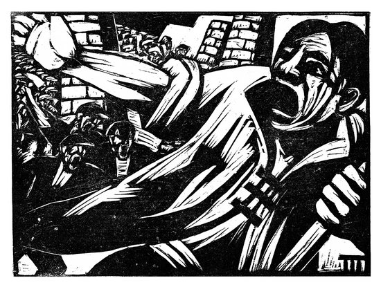 第一單元以“革命與抗戰(zhàn)的沖鋒號”為主題,展現(xiàn)了胡一川在各個(gè)戰(zhàn)場的“前線”,用刀和筆刻寫令人熱血沸騰的作品,發(fā)出那個(gè)時(shí)代震耳發(fā)聵的吼聲。