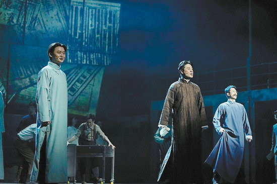 “每次排練,我們都會被蕩氣回腸的家國大義深深感動。”李大釗的飾演者劉思維說,“我們希望能通過自己的表演,把這種情緒、把愛國深情傳遞給更多觀眾。” 4月28日至5月7日,這部作品將在世紀(jì)劇院迎來首輪演出。(記者 高倩 方非攝)