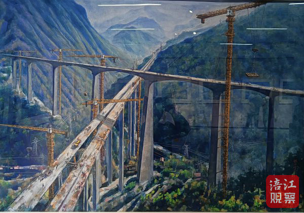本次展覽共展出美術(shù)作品60件,其中由饒幫成獨(dú)立創(chuàng)作完成的繪畫(huà)作品40件,饒幫成與學(xué)生共同創(chuàng)作的舞美道具及手工藝作品20件。在40件美術(shù)作品中,作者以多樣的藝術(shù)視覺(jué)勾勒巴山蜀水的自然與人文,有迤邐的涪江風(fēng)情、秀美的九寨溝風(fēng)光、巴蜀大地的科技與人文、峽江的雄奇險(xiǎn)峻、山野的自然與生態(tài),每一幅作品都吸引了參觀者駐足,感受夢(mèng)戀的土地、人間的花舞、似水的行云和溜溜的情歌。
