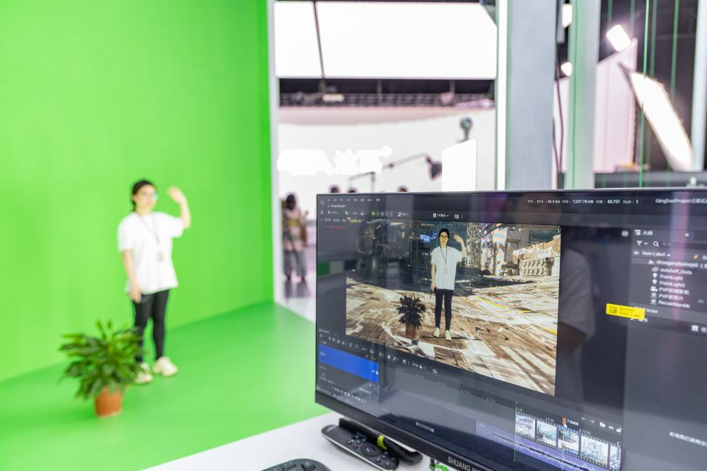 5月5日,在中國影視科技創(chuàng)新成果展上,參展企業(yè)展示感知虛擬制作技術。