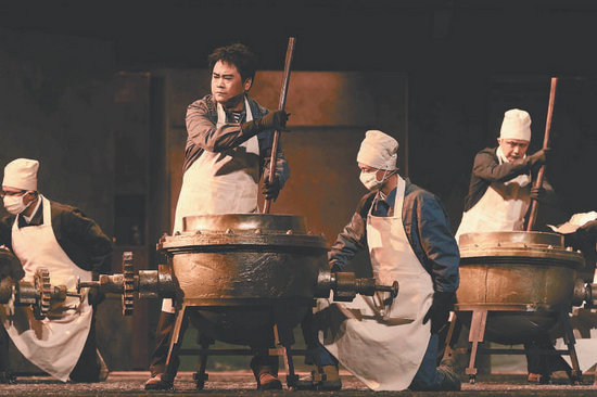 與歌劇跌宕的劇情相匹配,作曲家唐建平也創(chuàng)作了極具戲劇張力的音樂。全劇既有不少充滿挑戰(zhàn)的高音唱段,也有充滿“氛圍感”的旋律。221沒有合適的炸藥合成設(shè)備,工作人員就用人工土法攪拌,小危險不時發(fā)生,這時的音樂充滿懸疑感,緊扣心弦。唐建平還在劇中融入了當?shù)匾魳吩?,上半場音樂由藏族民歌引入,下半場則由青?;▋洪_啟,而在劇中的聯(lián)歡會上,藏族風(fēng)格的音樂元素不時響起,也為梁振道與女友的意外相遇鋪墊了情緒。