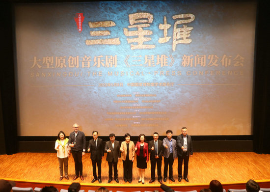 由四川省委宣傳部、紫荊文化集團有限公司指導,中國對外文化集團有限公司、四川省文化和旅游廳出品,北京天橋盛世投資集團有限責任公司聯(lián)合出品,中演演出院線發(fā)展有限責任公司、四川省歌舞劇院有限責任公司聯(lián)合主辦,北京四海一家文化傳播有限責任公司、四川省歌舞劇院有限責任公司聯(lián)合制作、三星堆博物館支持的大型原創(chuàng)音樂劇《三星堆》新聞發(fā)布會8日在中國國家博物館舉行。