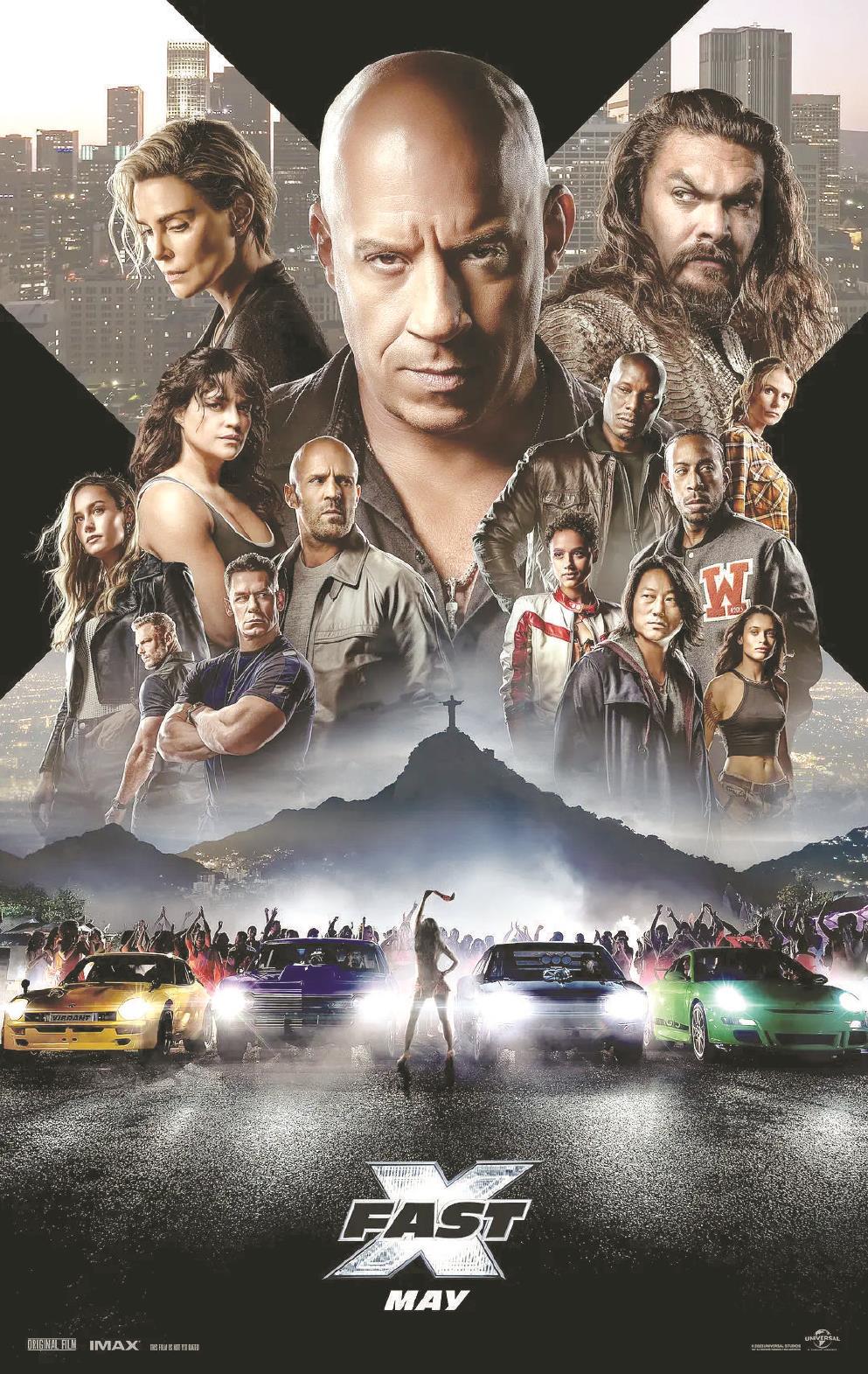 從第四部起,作為制片人的迪塞爾讓影片的投資規(guī)模水漲船高,也借助個(gè)人的人脈,先后吸引“巨石”強(qiáng)森、杰森·斯坦森、蓋爾·加朵、海倫·米倫、查里茲·塞隆、布麗·拉爾森等超級(jí)巨星和影后們出演戲份不等的配角,花哨的角色人設(shè)和演員光環(huán)結(jié)合制造的吸引力效應(yīng),遮掩了全系列影片劇作層面的單一匱乏。譬如在第十集里,反派但丁和唐之間血仇的情理邏輯不重要,濃墨重彩突出演員杰森·莫瑪疊加于這個(gè)角色的標(biāo)簽化個(gè)性:招搖騷氣的扮相和壯漢身材形成的反差萌,詠嘆調(diào)式浮夸性情和殘忍冷血反社會(huì)人格的一體兩面,這個(gè)人物漫畫(huà)式的外在姿態(tài),勝過(guò)他內(nèi)在的合理性。
