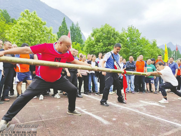 最先舉行的是羌式拔河團體比賽。隨著裁判員的哨聲吹響,“一二三拉、一二三拉……”比賽雙方緊握麻繩,齊心協力往后拉,充分展現了團結就是力量。這是一場趣味紛呈的全民健康活動,本次運動會除了乒乓球、籃球等大眾體育項目,還設置了“跳背簍”“丟窩窩”等北川傳統體育娛樂項目,并結合當前重點工作設置了“抗洪搶險”“應急轉移”等特色體驗項目,進一步提高全民健康意識,同時推進形成群眾防汛應急轉移共識,提升防大汛保安全工作實效。