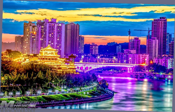 一江碧水穿城過(guò),兩岸風(fēng)光攬入懷。