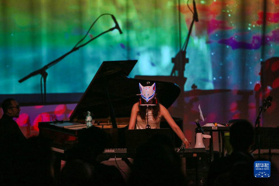 這是7月11日拍攝的音樂會現(xiàn)場。當日,“極地游樂場——王斐南流行室內(nèi)樂融合劇場”在上海舉辦。作為2023上海夏季音樂節(jié)一系列演出之一,音樂家們?yōu)橛^眾演繹了一場多維融合的室內(nèi)樂作品音樂會。(新華社記者 辛夢晨 攝)