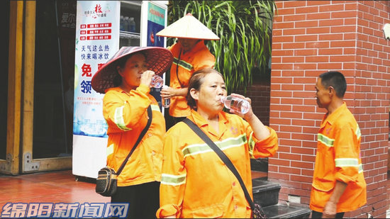 在位于游仙區(qū)森林雨火鍋店外的“愛心冰箱”處,記者看到,環(huán)衛(wèi)工人趙秀瓊和她的同事們正在拿出清涼的礦泉水解渴。“以前我們都是從家里帶水,不僅麻煩而且很快就喝完了。‘愛心冰箱’重啟后方便多了,冰水特別解暑。”趙秀瓊說。