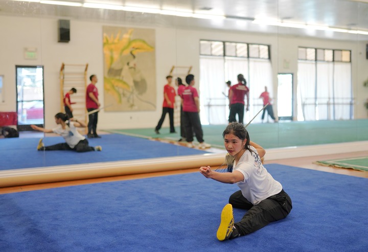 7月15日,美國(guó)加利福尼亞州舊金山灣區(qū),美國(guó)運(yùn)動(dòng)員朱迪·劉正在備戰(zhàn)成都第31屆世界大學(xué)生夏季運(yùn)動(dòng)會(huì)太極項(xiàng)目。新華社記者吳曉凌攝