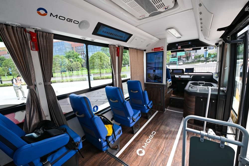 這是7月15日拍攝的大運(yùn)村自動(dòng)駕駛巴士內(nèi)部。新華社記者 王曦 攝