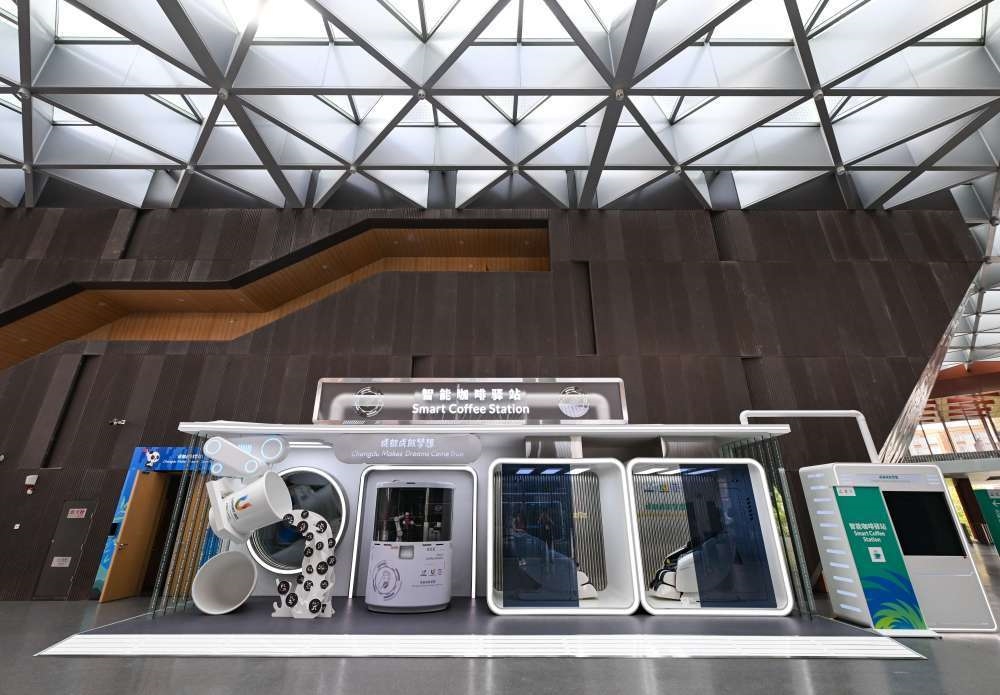 這是7月15日拍攝的大運(yùn)村內(nèi)的智能咖啡驛站。新華社記者 王曦 攝