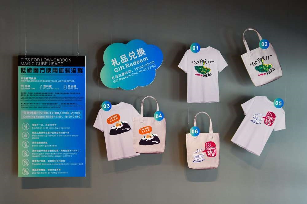 這是7月16日拍攝的“低碳魔方”使用體驗(yàn)流程信息牌及可參與兌換的禮品。新華社記者 胥冰潔 攝