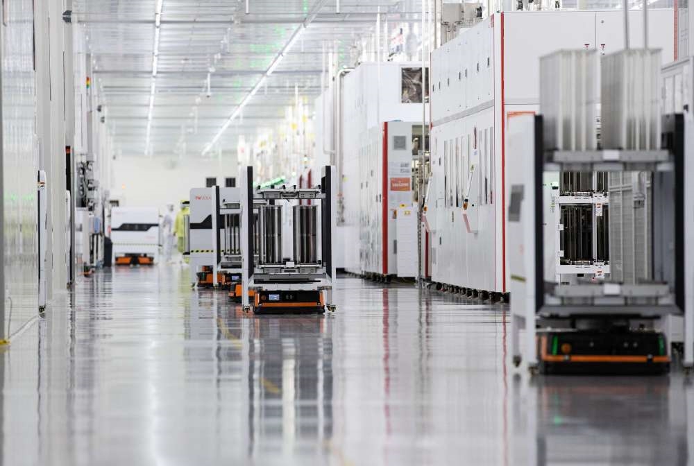 6月21日,在通威太陽能成都雙流生產(chǎn)基地太陽能電池片智能智造車間,機(jī)器人在穿梭轉(zhuǎn)運(yùn)。新華社記者 江宏景 攝