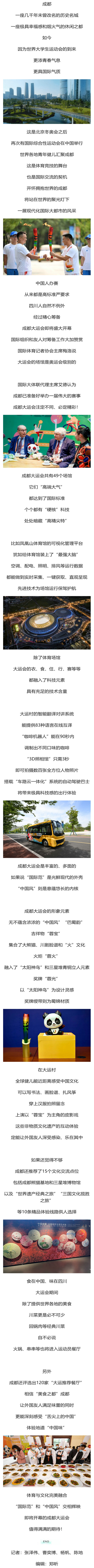 成都,一座幾千年未曾改名的歷史名城,一座極具幸福感和煙火氣的休閑之都。如今,因?yàn)槭澜绱髮W(xué)生運(yùn)動(dòng)會(huì)的到來,更添青春氣息,更具國(guó)際氣質(zhì)。