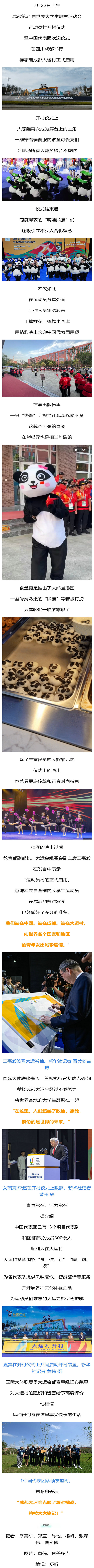 7月22日上午,成都第31屆世界大學(xué)生夏季運動會運動員村開村儀式暨中國代表團歡迎儀式在四川成都舉行,標(biāo)志著成都大運村正式啟用。