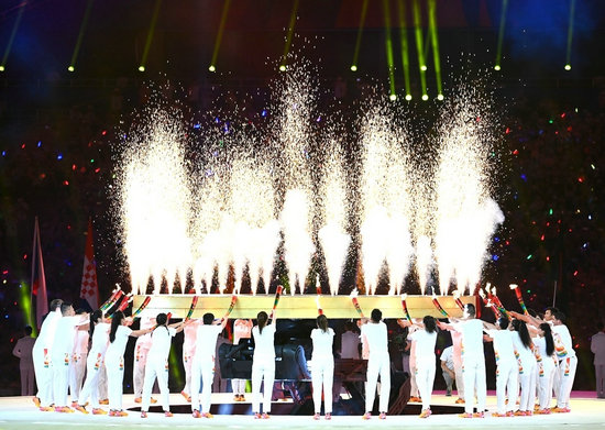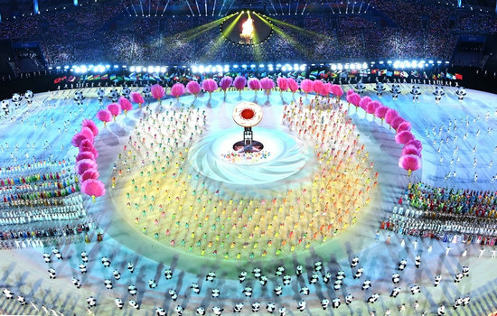 隨著大運會主火炬塔被點燃,整個開幕式被推向高潮。