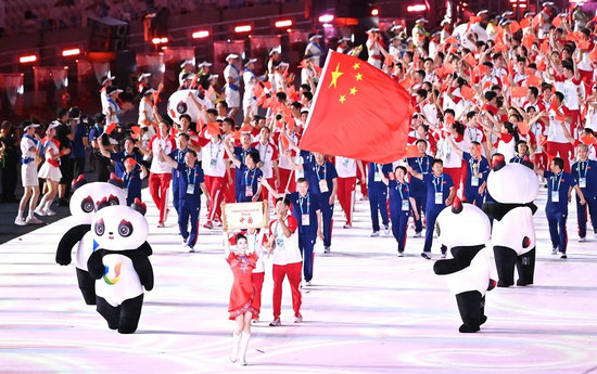 中國大學(xué)生體育代表團在開幕式上入場