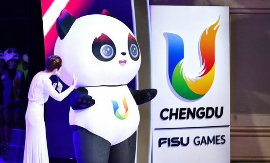 成都大運(yùn)會(huì)吉祥物“蓉寶”在聯(lián)歡會(huì)現(xiàn)場(chǎng)