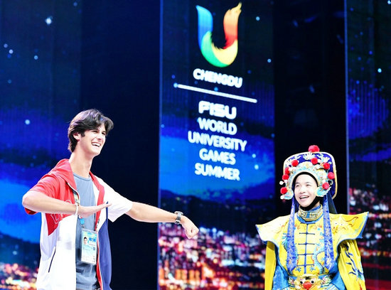 7月29日晚,“青春InTime”——成都第31屆世界大學(xué)生夏季運(yùn)動(dòng)會(huì)運(yùn)動(dòng)員聯(lián)歡會(huì)在成都大運(yùn)會(huì)運(yùn)動(dòng)員村舉辦。本場(chǎng)聯(lián)歡會(huì)是中央宣傳部(國(guó)務(wù)院新聞辦公室)、教育部、四川省人民政府共同主辦的“青春綻放——世界大學(xué)生運(yùn)動(dòng)員人文交流活動(dòng)”項(xiàng)目之一。