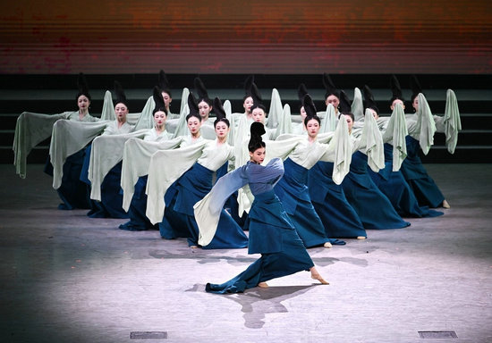 演員在聯(lián)歡會(huì)現(xiàn)場(chǎng)表演《只此青綠》