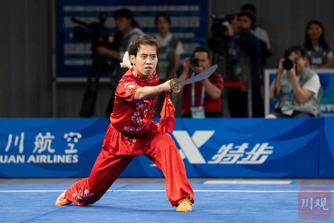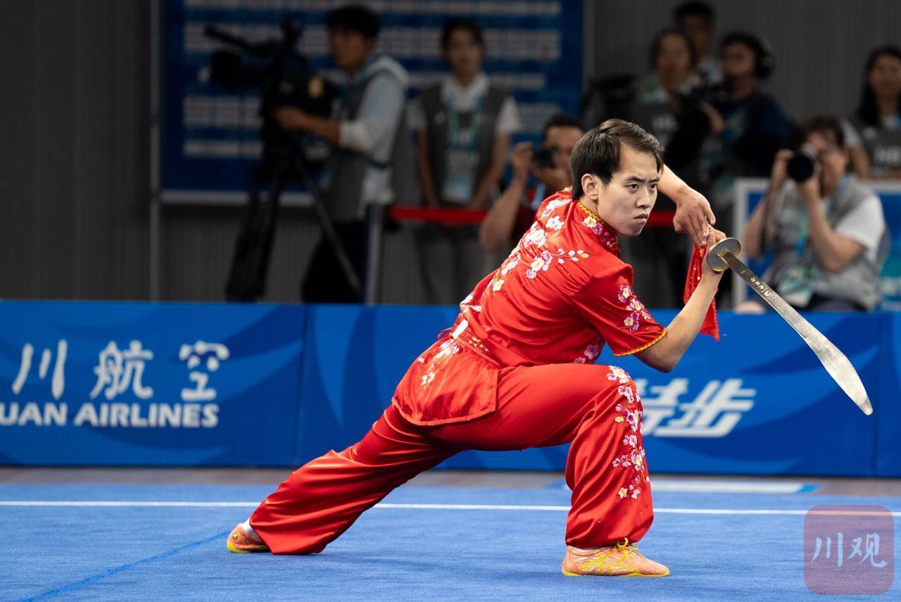 7月30日,金哲典在成都大運會武術項目男子刀術比賽中。李強 攝