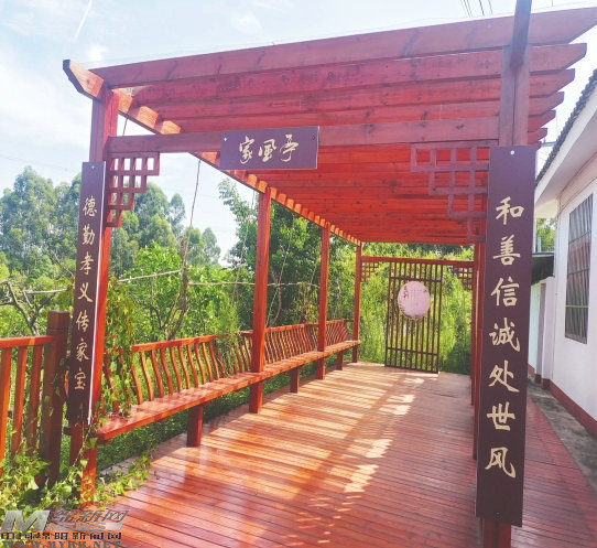 跟隨九合村黨委書記卿官松的步伐,記者來到村頭一個(gè)古色古香的家風(fēng)亭。“和善信誠處世風(fēng)、德勤孝義傳家寶”兩行對(duì)聯(lián)躍然于亭外,濃厚的文化氛圍撲面而來。村民在輕松悠閑散步中閱覽一段段家風(fēng)家訓(xùn),亭廊以潤物細(xì)無聲的形式培育良好家風(fēng),也為鄉(xiāng)風(fēng)文明建設(shè)增添了一個(gè)新的展示窗口。“文明村不僅美在村容村貌這個(gè)‘面子’上,也美在好家風(fēng)、好家訓(xùn)這個(gè)‘里子’上。”卿官松說。