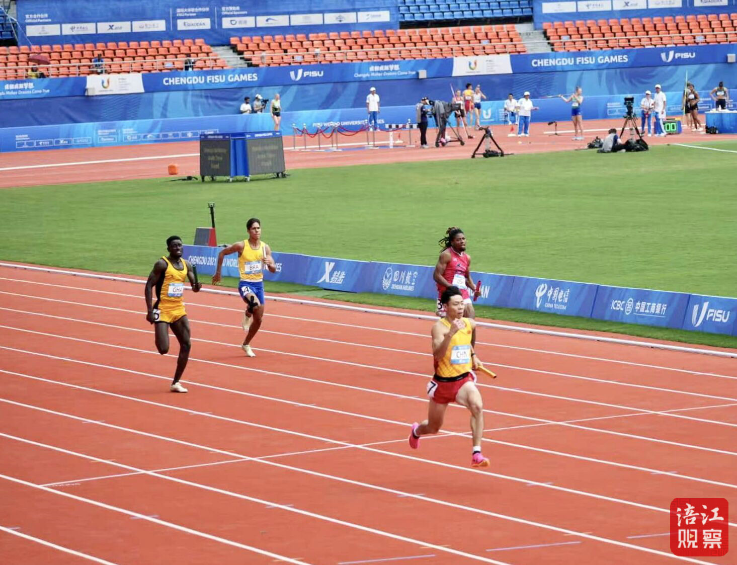 在剛剛結(jié)束的成都大運(yùn)會田徑男子4×100米第一輪比賽中,由鄧智艦、隋高飛、陳佳鵬、陳冠鋒組成的中國隊(duì)跑出38秒93,以小組第一晉級決賽。決賽將于8月6日19:10進(jìn)行。