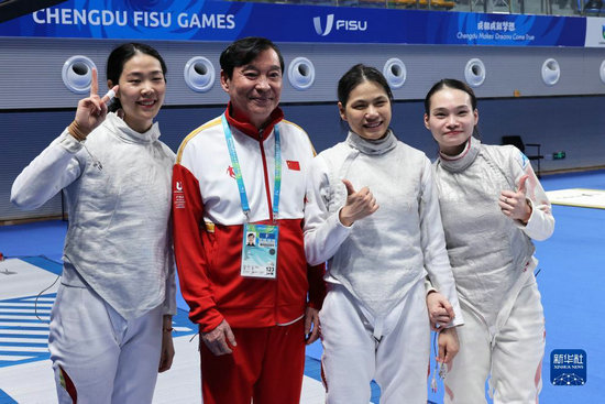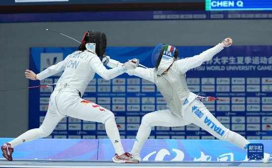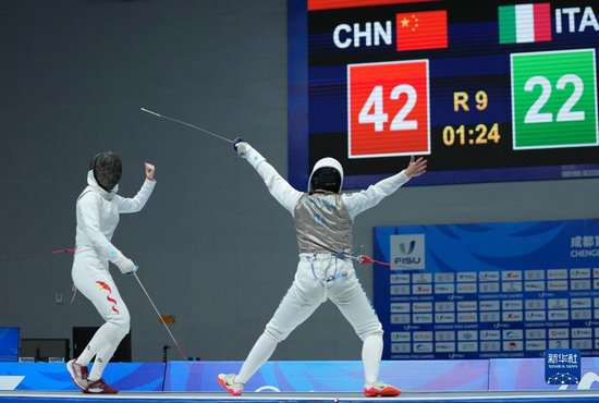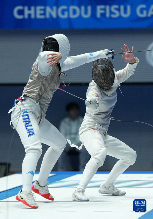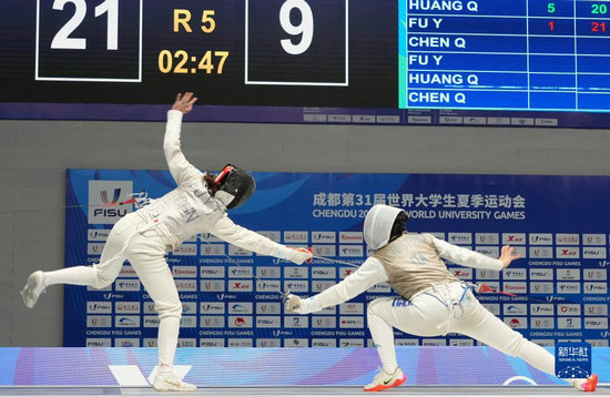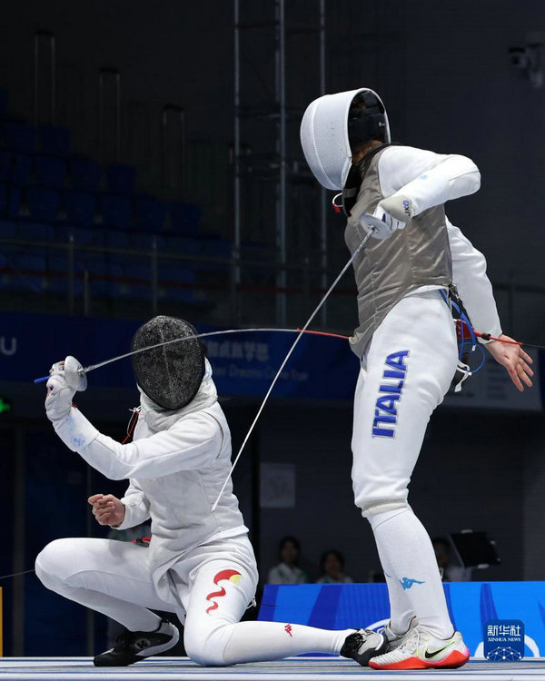 當(dāng)日,在成都舉行的第31屆世界大學(xué)生夏季運(yùn)動會擊劍女子花劍團(tuán)體金牌賽中,中國隊(duì)以45比22戰(zhàn)勝意大利隊(duì),獲得金牌。