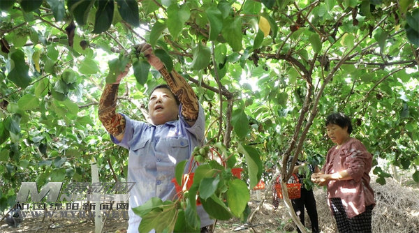 日前,記者走進(jìn)九合村奇異谷家庭農(nóng)場種植基地,放眼望去,一片綠意盎然。寬大的葉片下掛滿了拇指大小的果實(shí),光滑圓潤,形似小棗,惹人喜愛。村民馮桂瓊和鄰居們正在藤架下熟練地將一顆顆成熟的奇異莓摘下(如圖),裝框、包裝、運(yùn)輸,現(xiàn)場一派忙碌的豐收景象。“九合村的奇異莓品質(zhì)很好,我們在家門口就把錢掙到了,一天能掙100多元。”馮桂瓊告訴記者。