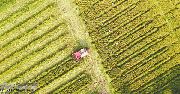 綿陽新聞網(wǎng)訊 當前,梓潼縣5.1萬畝雜交水稻制種進入成熟季。各個種植基地里,沉甸甸的稻穗壓彎了稻稈,陣陣輕風卷起金色波浪,一臺臺聯(lián)合收割機在大田里來回收割,處處一派繁忙的豐收景象。