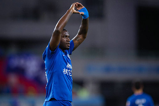 8月27日,武漢三鎮(zhèn)隊(duì)球員馬爾康在進(jìn)球后慶祝。新華社記者 伍志尊 攝