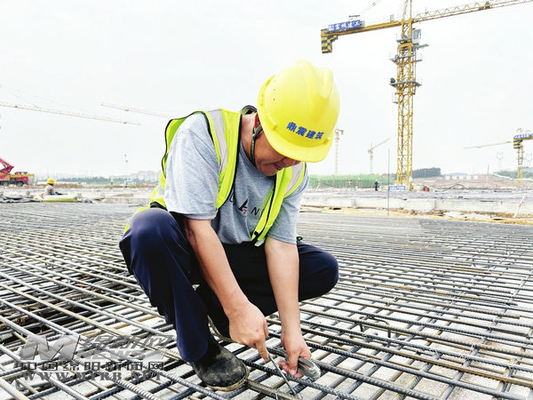 工人仔細(xì)綁扎鋼筋