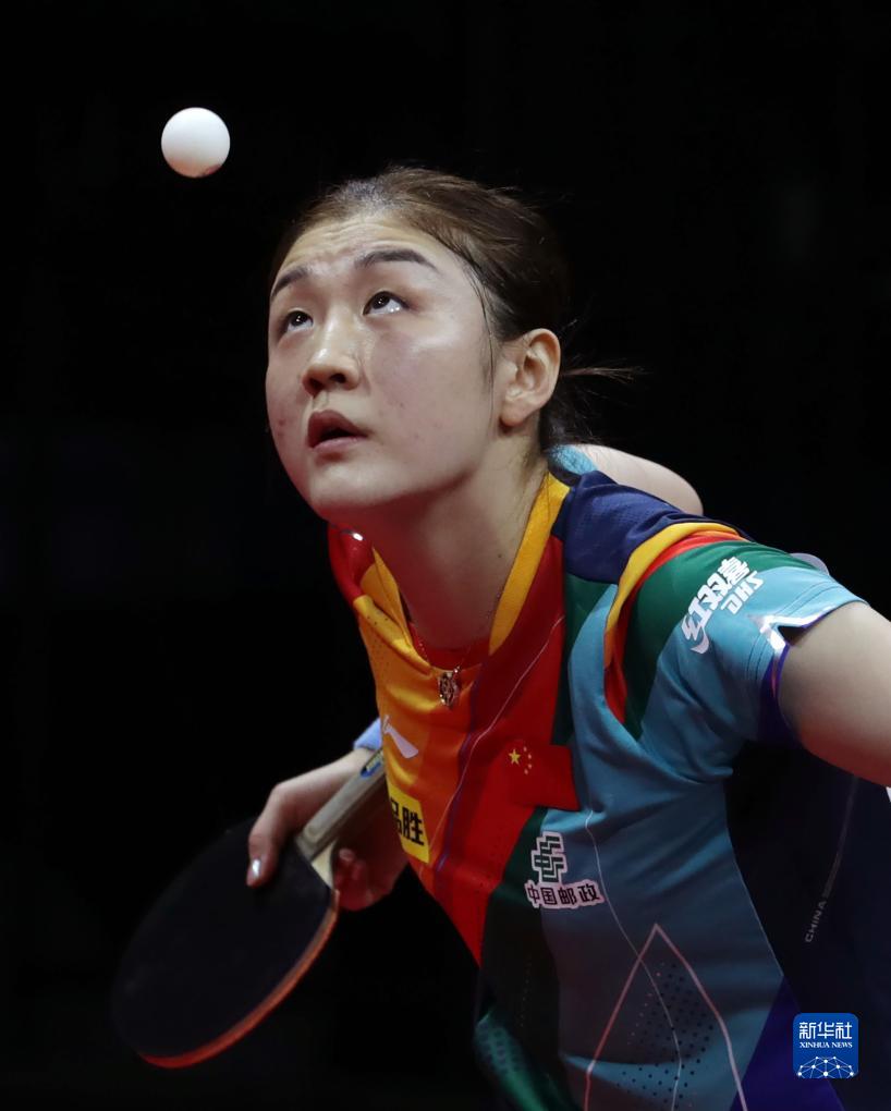 9月5日,中國(guó)隊(duì)選手陳夢(mèng)在比賽中發(fā)球。她以3比1戰(zhàn)勝韓國(guó)隊(duì)選手田志希。新華社發(fā)(李相浩攝)