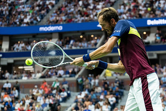 9月10日,梅德韋杰夫在比賽中回球。新華社記者劉杰攝