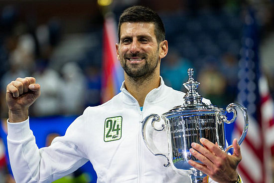 9月10日,焦科維奇在頒獎儀式上慶祝。當日,在紐約進行的2023美國網(wǎng)球公開賽男單決賽中,塞爾維亞選手焦科維奇以3:0戰(zhàn)勝俄羅斯選手梅德韋杰夫,獲得冠軍。新華社記者劉杰攝