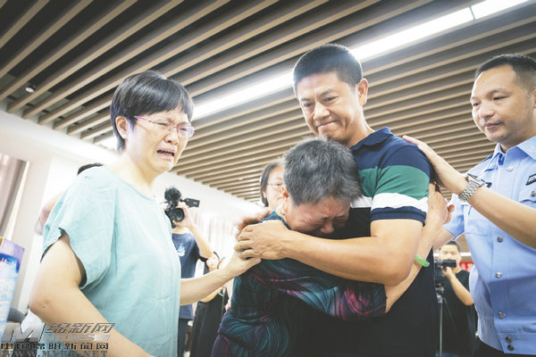 13日上午,在認(rèn)親儀式現(xiàn)場(chǎng),當(dāng)警方念出身份確認(rèn)通知書(shū)后,趙先生緊緊抱著父母,一家人相擁痛哭。