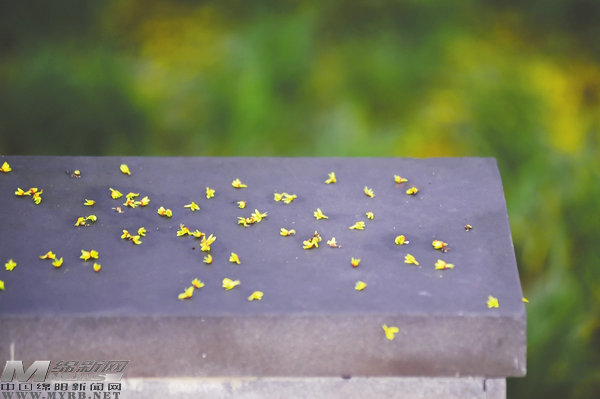一場秋雨,涼意漸濃,欒樹上簇簇金黃色花朵競相綻放。9月12日,記者在綿陽飛云大道、機場西路、涪濱路、群文街等路段看到,欒樹枝頭上花朵層層疊疊,輕風(fēng)徐來,細(xì)碎黃花如雨點飄落,為城市街頭添上了一道靚麗風(fēng)景。