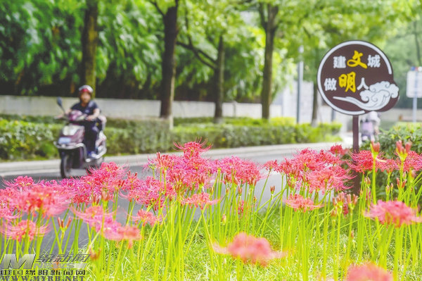 最近,經(jīng)開區(qū)涪濱路上的一片片彼岸花迎來盛開期,翠綠纖細(xì)的稈莖上,一朵朵鮮紅艷麗的花隨風(fēng)舞動,張揚又熱烈。