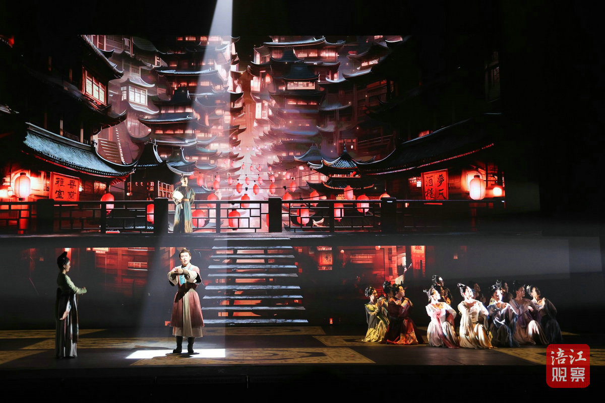 原創(chuàng)音樂(lè)劇《將進(jìn)酒》聚焦李白青少年時(shí)期在家鄉(xiāng)江油的生活經(jīng)歷與性格塑造,以“音樂(lè)+舞蹈+視覺(jué)”等方式呈現(xiàn)“一個(gè)真實(shí)的李白,一個(gè)人化的李白”,講述“凡人李白如何成為詩(shī)仙李白”的故事。同時(shí),唐代四川及江油的自然山水、風(fēng)土人情等,也通過(guò)LED和AI手段在舞臺(tái)呈現(xiàn),帶給觀眾沉浸式觀看體驗(yàn)。