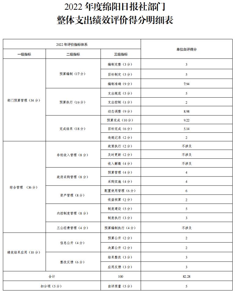 附件:2022年度綿陽日報社部門整體支出績效評價得分明細(xì)表
