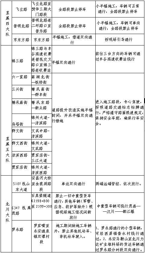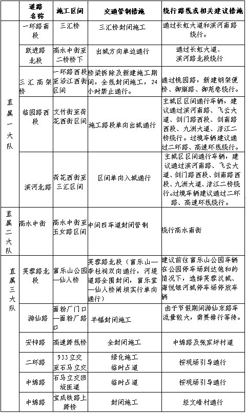 全市施工路段情況