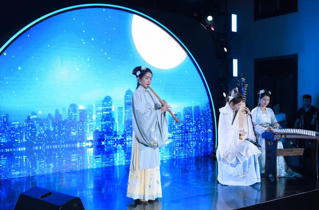 9月27日,演員在表演民樂合奏《城里的月光》。新華社記者 陳鐸 攝