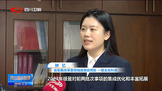 省發(fā)展改革委雙城政策協同處 一級主任科員 鐘憶:2024年版是對前兩批次事項的集成優(yōu)化和豐富拓展,包括10個方面39項重點事項,我們將持續(xù)加強與重慶方面的協同聯動,切實提高兩地群眾的幸福感、獲得感。
