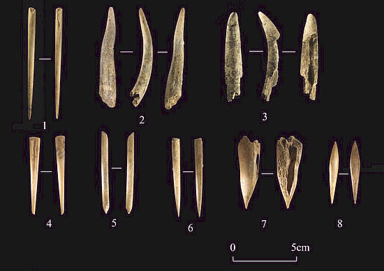 青池遺址第II發(fā)掘區(qū)出土的骨針、骨錐和骨角器(新石器時(shí)代)。天津市文化遺產(chǎn)保護(hù)中心供圖